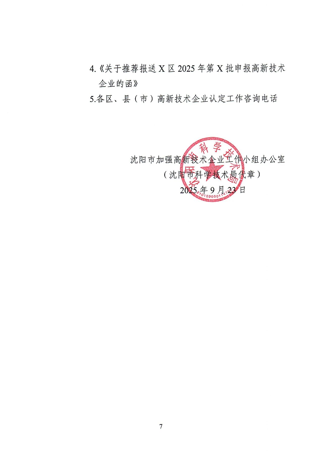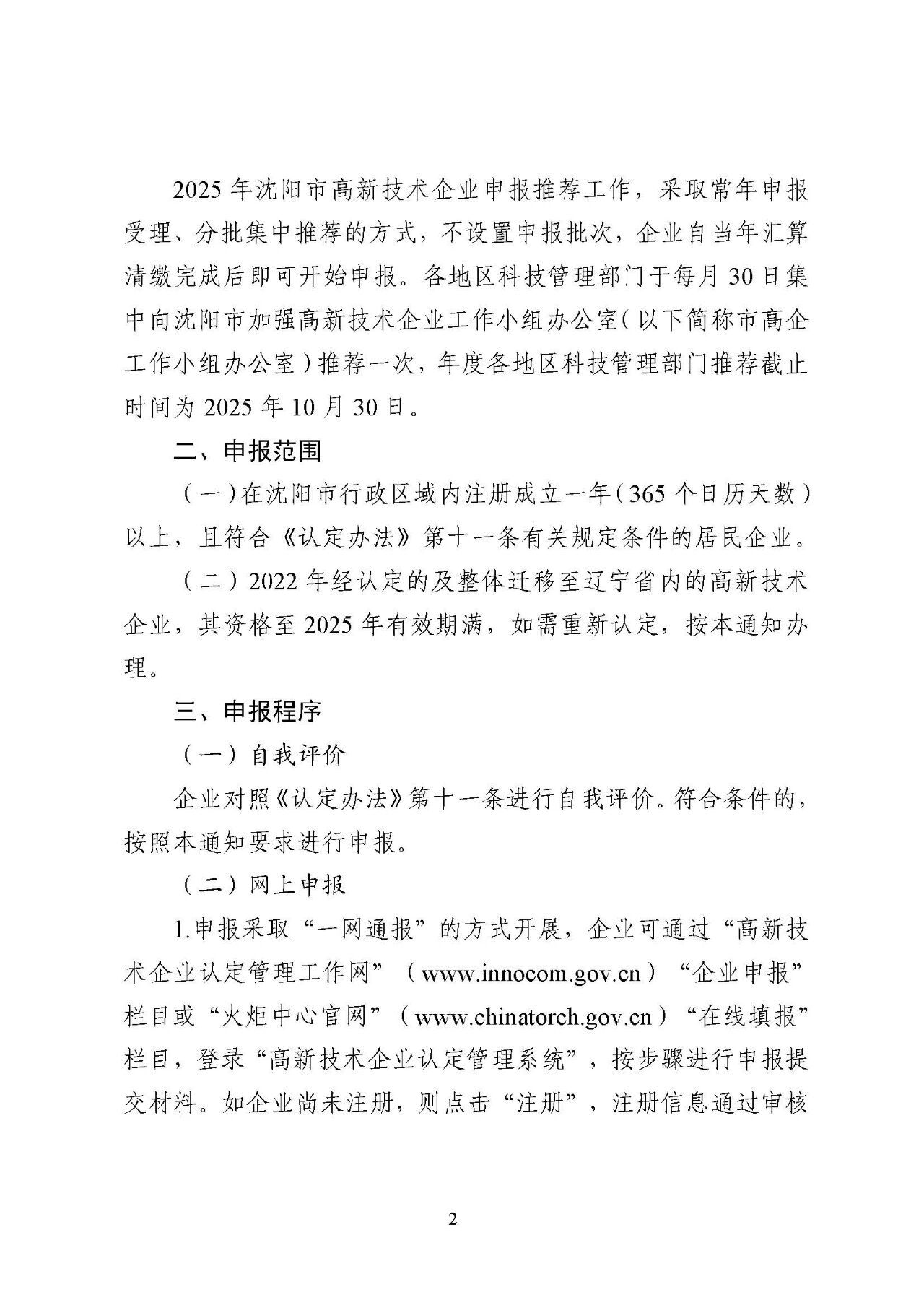 > 关于按照省有关部门最新要求组织开展2025年沈阳市高新技术企业申报推荐工作的通知