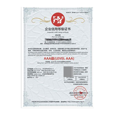 企业信用等级直接反映了企业的整体诚信形象和信用度的高低 而AAA信用评级是展现企业履约能力的有力证明,在进行项目招投标、融资贷款、政府采购、企业宣传等 活动时具备相当重要的作用也能帮助企业在沟通过程中,更好地取得客户信任、促成合作成功