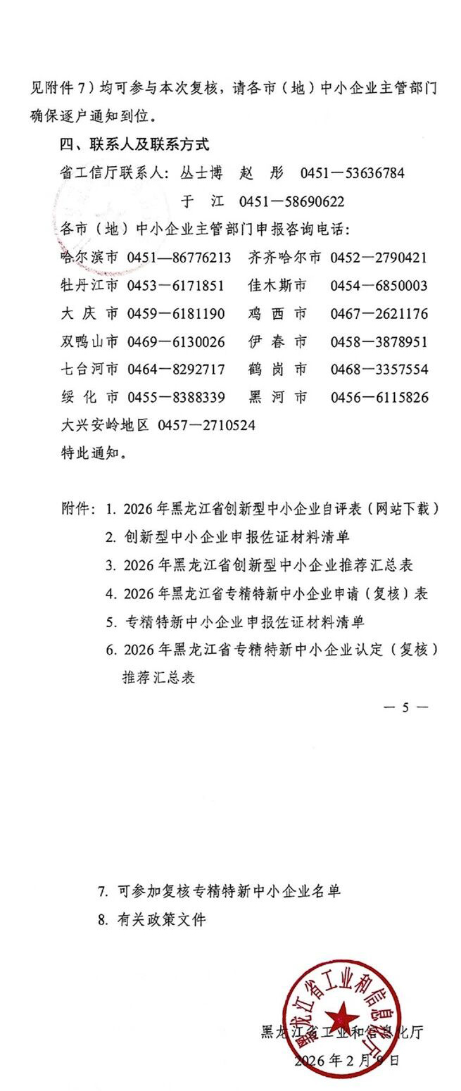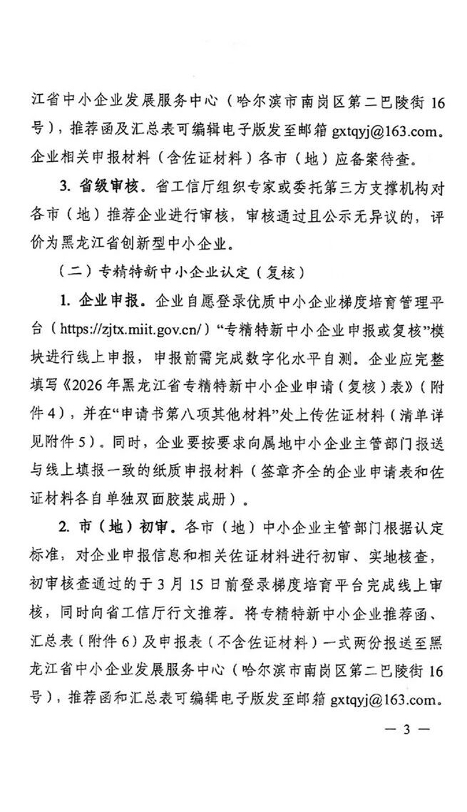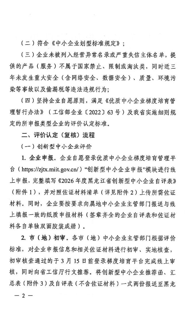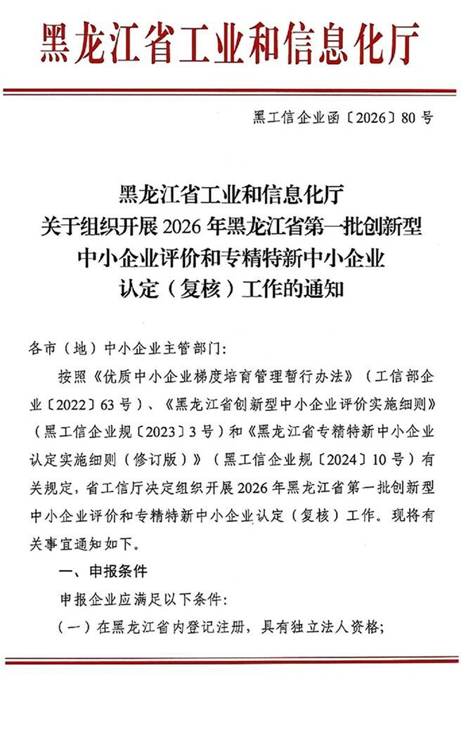 > 【黑龙江省】2026年第一批创新型中小企业评价和专精特新中小企业认定(复核)通知