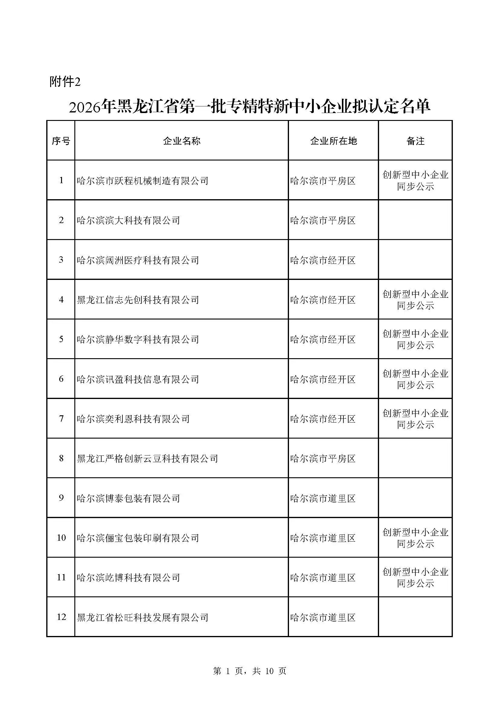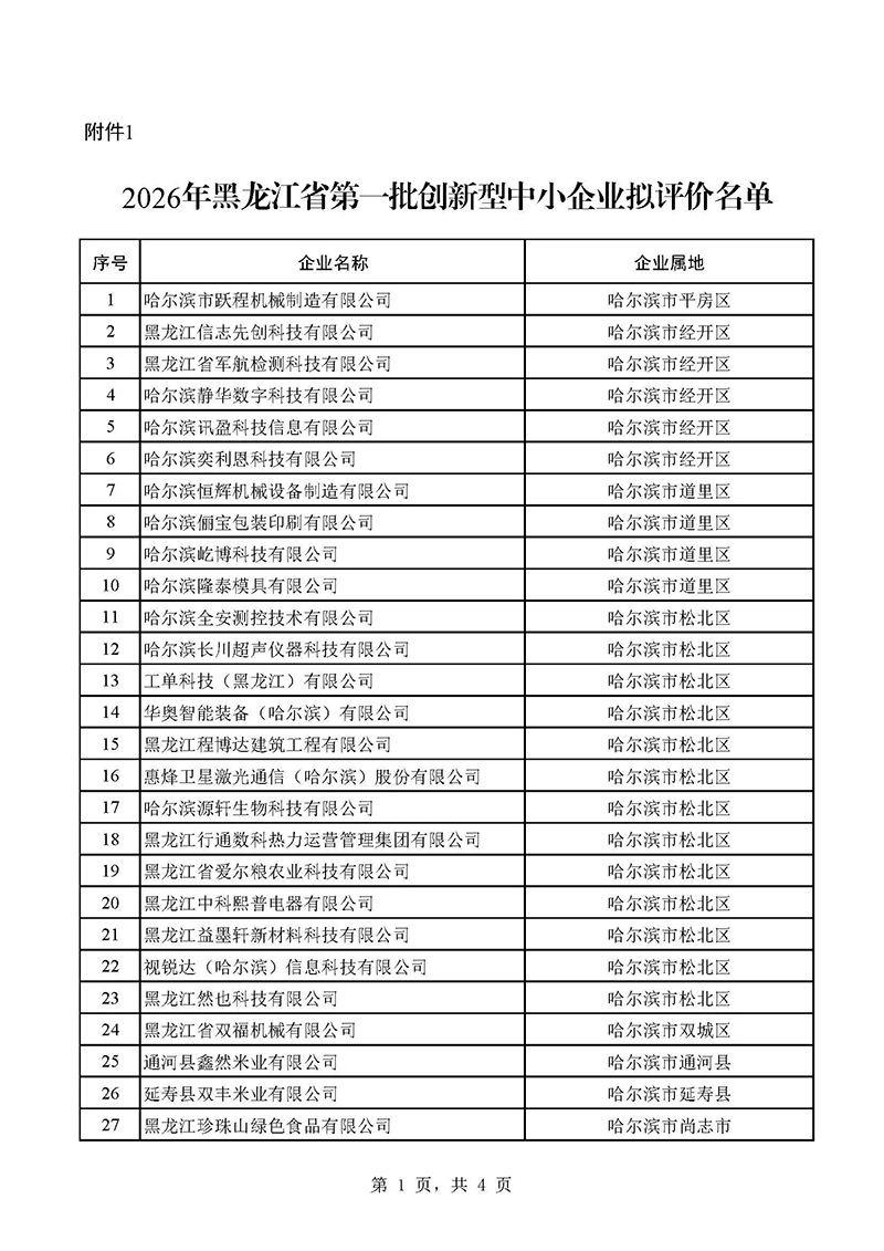 附件:1.2026年黑龙江省第一批创新型中小企业拟评价名单