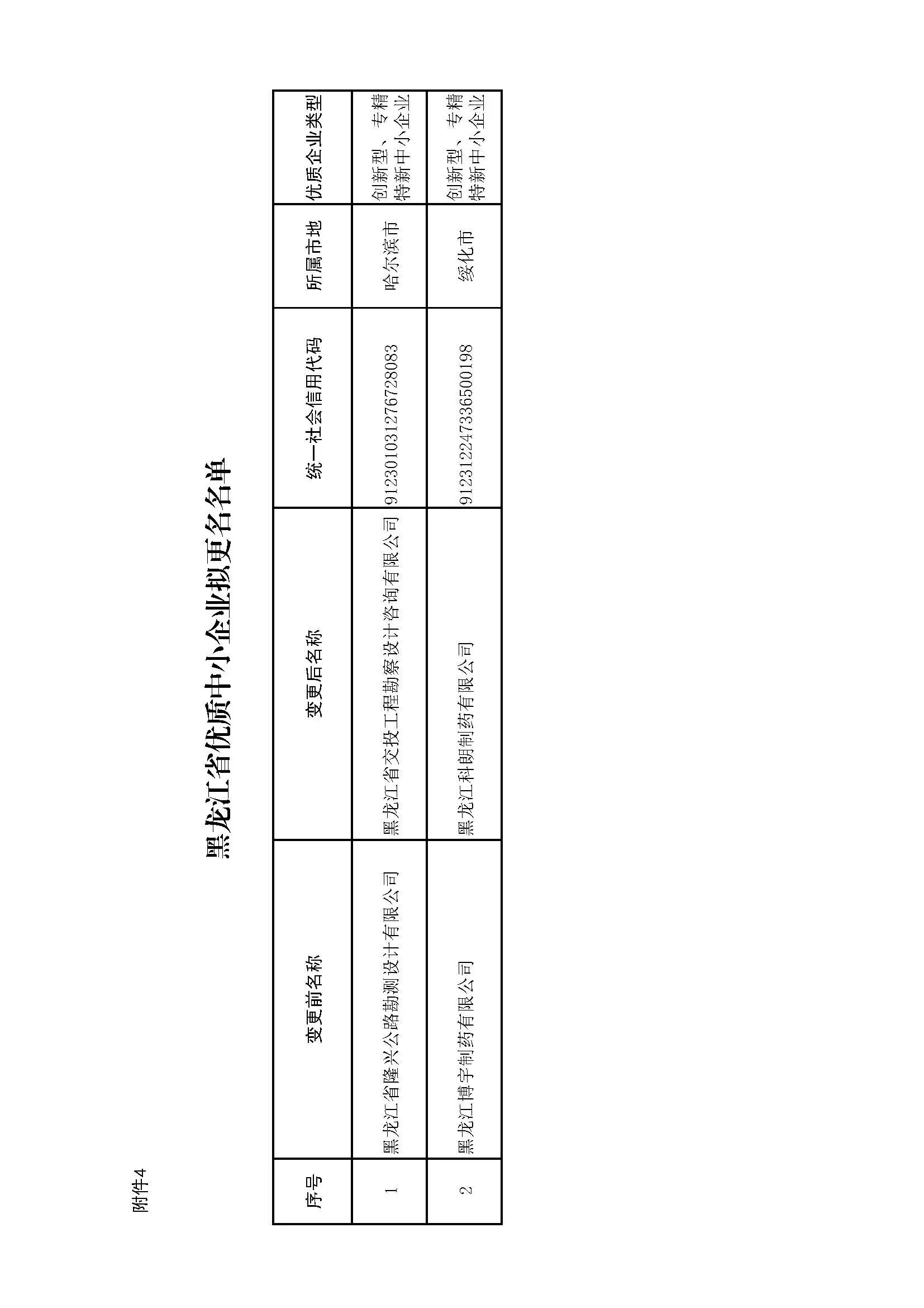 4.黑龙江省优质中小企业拟更名名单